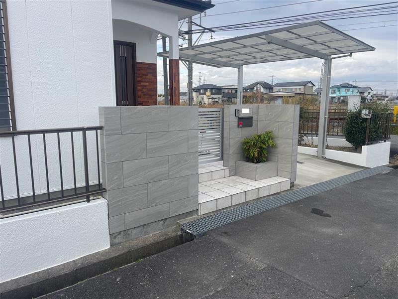 施工の際、プロの技術を駆使し、見違えるような新しい外構へと変更しました。お客様からは「パッと見が変わり、すぐに変化を体感できる」と高い満足度をいただいております。